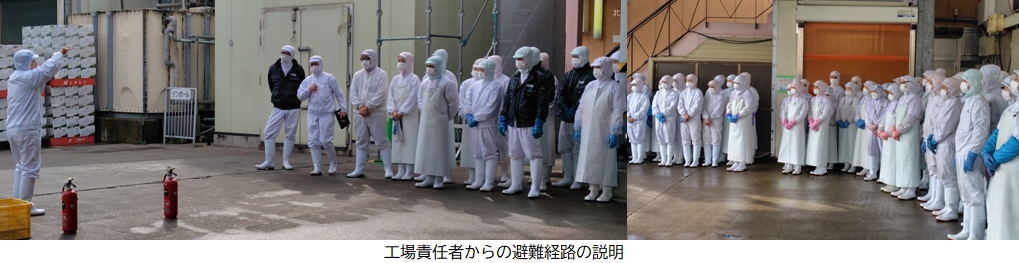 昨年は雨の中での訓練でしたが今年は天気のなか、落ち着いて避難経路の確認を行うことができました。
